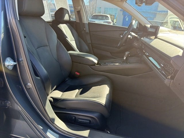 Located in Prescott AZ, and also serving Flagstaff, Cottonwood, Sedona, Camp Verde, Scottsdale, and the greater Phoenix area. Also, we're part of the Valley Honda Dealers. Thank you again for your interest in this Honda Accord Hybrid. It is equipped with these features: 12 Speakers, 4-Wheel Disc Brakes, ABS brakes, Adaptive Cruise Control: Adaptive Cruise Control (ACC) with Low-Speed Follow, Adaptive suspension, Air Conditioning, Alloy wheels, AM/FM radio, Apple CarPlay/Android Auto, Auto High-beam Headlights, Auto-dimming Rear-View mirror, Automatic temperature control, Bose Premium Sound System, Brake assist, Bumpers: body-color, Compass, Delay-off headlights, Driver door bin, Driver vanity mirror, Dual front impact airbags, Dual front side impact airbags, Electronic Stability Control, Emergency communication system: HondaLink, Exterior Parking Camera Rear, Four wheel independent suspension, Front anti-roll bar, Front Bucket Seats, Front Center Armrest, Front dual zone A/C, Front reading lights, Fully automatic headlights, Heads-Up Display, Heated & Ventilated Front Bucket Seats, Heated door mirrors, Heated front seats, Heated rear seats, Illuminated entry, Knee airbag, Lane departure: Lane Keeping Assist System (LKAS) active, Leather Shift Knob, Leather steering wheel, Leather-Trimmed Seat Trim, Low tire pressure warning, Memory seat, Navigation system: Google Built-In, Occupant sensing airbag, Outside temperature display, Overhead airbag, Overhead console, Panic alarm, Passenger door bin, Passenger vanity mirror, Power door mirrors, Power driver seat, Power moonroof, Power passenger seat, Power steering, Power windows, Radio data system, Rain sensing wipers, Rear anti-roll bar, Rear reading lights, Rear seat center armrest, Rear side impact airbag, Rear window defroster, Remote keyless entry, Security system, Speed control, Speed-sensing steering, Speed-Sensitive Wipers, Split folding rear seat, Steering wheel mounted audio controls, Telescoping steering wheel, Tilt steering wheel, Traction control, Trip computer, Turn signal indicator mirrors, Variably intermittent wipers, Ventilated front seats, and Wheels: 19" x 8.5J Berlina Black.