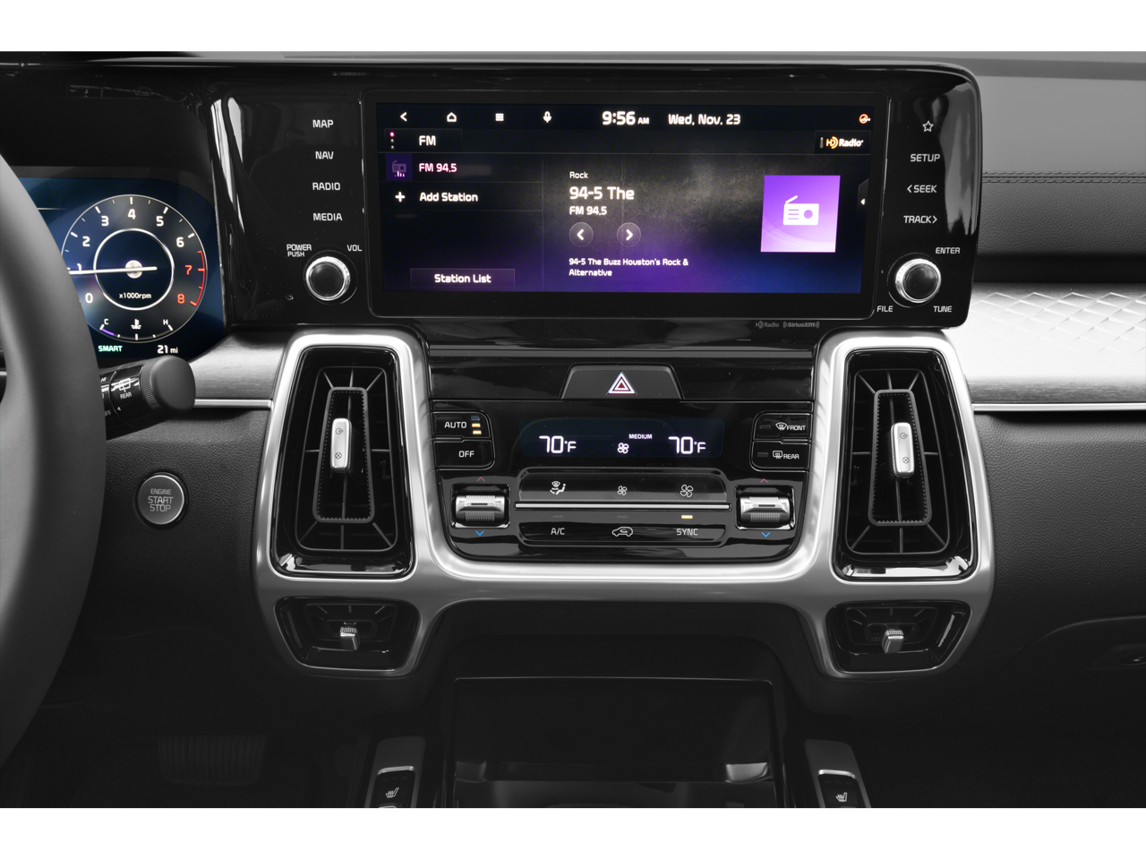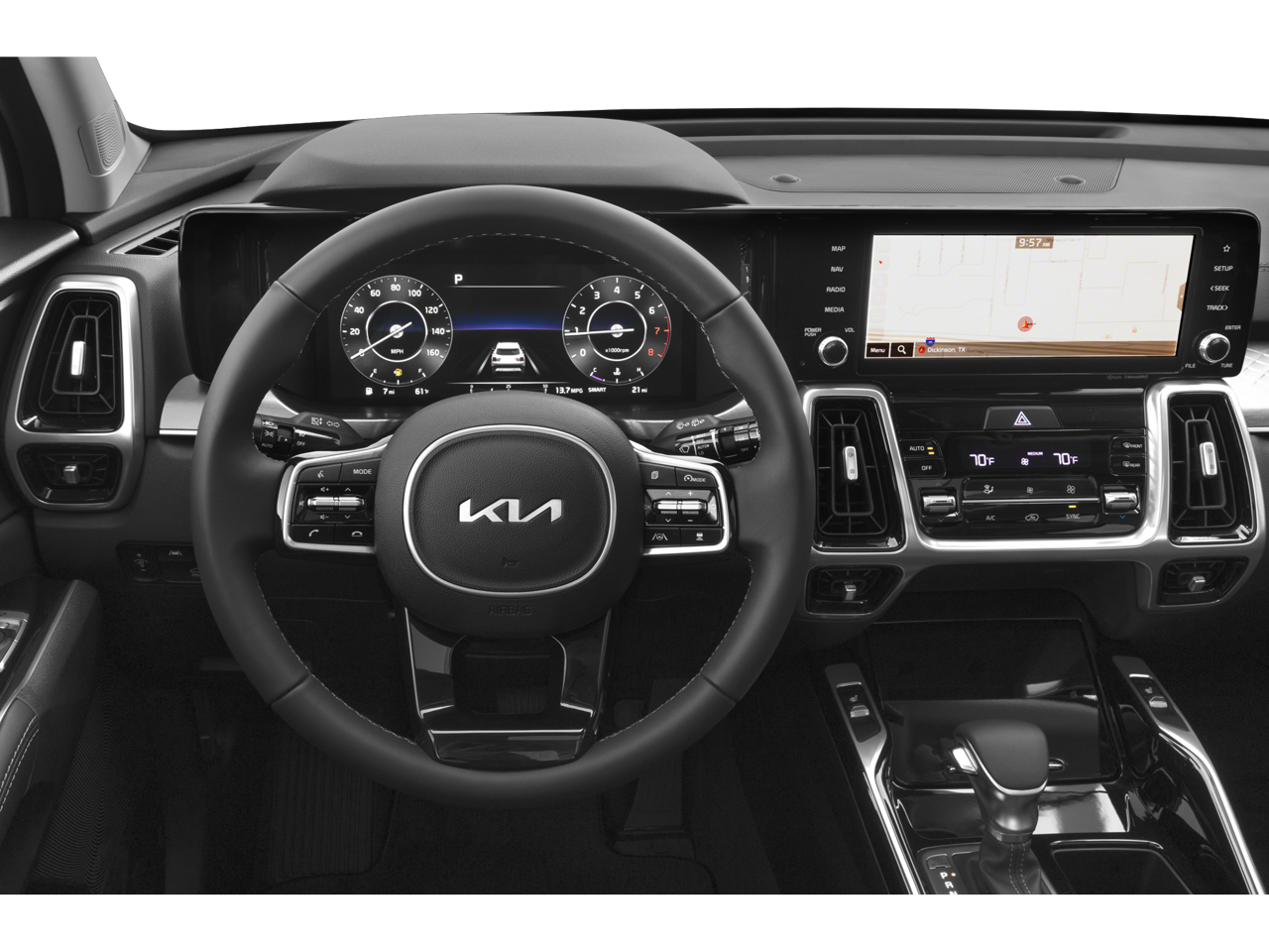 Located in Prescott AZ, and also serving Flagstaff, Cottonwood, Sedona, Camp Verde, Scottsdale, and the greater Phoenix area. Also, we're part of the Valley Honda Dealers. Thank you again for your interest in this Kia Sorento. It is equipped with these features: 3.316 Axle Ratio, 3rd row seats: split-bench, 4-Wheel Disc Brakes, 6 Speakers, ABS brakes, Air Conditioning, Alloy wheels, AM/FM radio: SiriusXM, Apple CarPlay & Android Auto, Auto High-beam Headlights, Auto-dimming Rear-View mirror, Automatic temperature control, Brake assist, Bumpers: body-color, Carpet Floor Mats, Delay-off headlights, Driver door bin, Driver vanity mirror, Dual front impact airbags, Dual front side impact airbags, Electronic Stability Control, Emergency communication system, Exterior Parking Camera Rear, Four wheel independent suspension, Front anti-roll bar, Front Bucket Seats, Front Center Armrest, Front dual zone A/C, Front fog lights, Front reading lights, Fully automatic headlights, Heated door mirrors, Heated Front Bucket Seats, Heated front seats, Illuminated entry, Knee airbag, Leather steering wheel, Low tire pressure warning, Navigation System, Occupant sensing airbag, Outside temperature display, Overhead airbag, Overhead console, Panic alarm, Passenger door bin, Passenger vanity mirror, Power door mirrors, Power driver seat, Power Liftgate, Power moonroof, Power passenger seat, Power steering, Power windows, Radio data system, Radio: AM/FM Audio System, Rain sensing wipers, Rear air conditioning, Rear anti-roll bar, Rear reading lights, Rear window defroster, Rear window wiper, Remote keyless entry, Roof rack: rails only, Security system, Smart Key w/ Push Button and Remote Start, Speed control, Speed-sensing steering, Split folding rear seat, Spoiler, Steering wheel mounted audio controls, SynTex Artificial Leather Seat Trim, Tachometer, Telescoping steering wheel, Tilt steering wheel, Traction control, Trip computer, Turn signal indicator mirrors, Variably intermittent wipers, and Wheels: 8.5J x 20" Gloss Black Alloy.