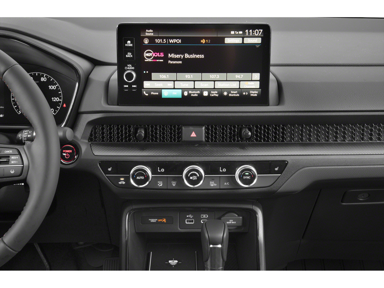 Located in Prescott AZ, and also serving Flagstaff, Cottonwood, Sedona, Camp Verde, Scottsdale, and the greater Phoenix area. Also, we're part of the Valley Honda Dealers. Thank you again for your interest in this Honda CR-V Hybrid. It is equipped with these features: 4-Wheel Disc Brakes, 4.438 Axle Ratio, 8 Speakers, ABS brakes, Adaptive Cruise Control: Adaptive Cruise Control (ACC) with Low-Speed Follow, Air Conditioning, Alloy wheels, AM/FM radio: SiriusXM, Auto High-beam Headlights, Auto-dimming Rear-View mirror, Automatic temperature control, Blind Spot Information (BSI) System warning, Brake assist, Bumpers: body-color, Compass, Delay-off headlights, Driver door bin, Driver vanity mirror, Dual front impact airbags, Dual front side impact airbags, Electronic Stability Control, Exterior Parking Camera Rear, Four wheel independent suspension, Front anti-roll bar, Front Bucket Seats, Front Center Armrest, Front dual zone A/C, Front reading lights, Fully automatic headlights, Heated door mirrors, Heated Front Bucket Seats, Heated front seats, Illuminated entry, Knee airbag, Leather Seat Trim, Leather Shift Knob, Leather steering wheel, Low tire pressure warning, Memory seat, Occupant sensing airbag, Outside temperature display, Overhead airbag, Overhead console, Panic alarm, Passenger door bin, Passenger vanity mirror, Power door mirrors, Power driver seat, Power Liftgate, Power moonroof, Power passenger seat, Power steering, Power windows, Radio data system, Radio: 320-Watt AM/FM/HD/SiriusXM Audio System, Rear anti-roll bar, Rear reading lights, Rear seat center armrest, Rear side impact airbag, Rear window defroster, Rear window wiper, Remote keyless entry, Security system, Speed control, Speed-sensing steering, Speed-Sensitive Wipers, Split folding rear seat, Spoiler, Steering wheel mounted audio controls, Telescoping steering wheel, Tilt steering wheel, Traction control, Trip computer, Turn signal indicator mirrors, Variably intermittent wipers, Wheels: 18" Berlina Black Alloy, and Wireless Apple CarPlay/Wireless Android Auto.